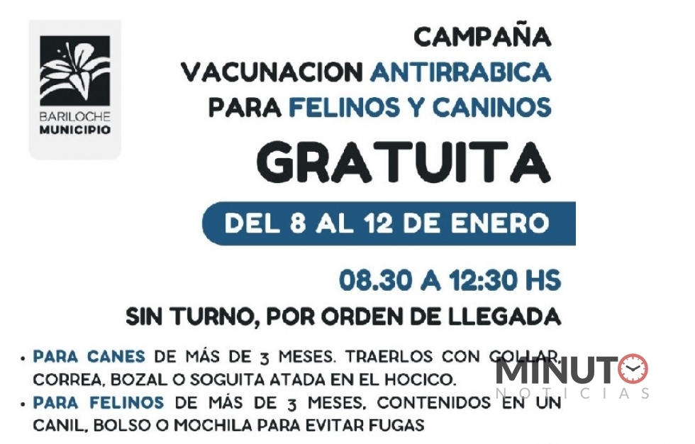 Vacunación antirrábica para caninos: Todos los martes de 12 a 14 horas. Se aplica a perros mayores de 3 meses de edad. No es necesario solicitar turno, se atiende por orden de llegada. Se solicita a los propietarios que traigan a los perros con correa y bozal (o una soguita atada en el hocico) para evitar posibles accidentes.