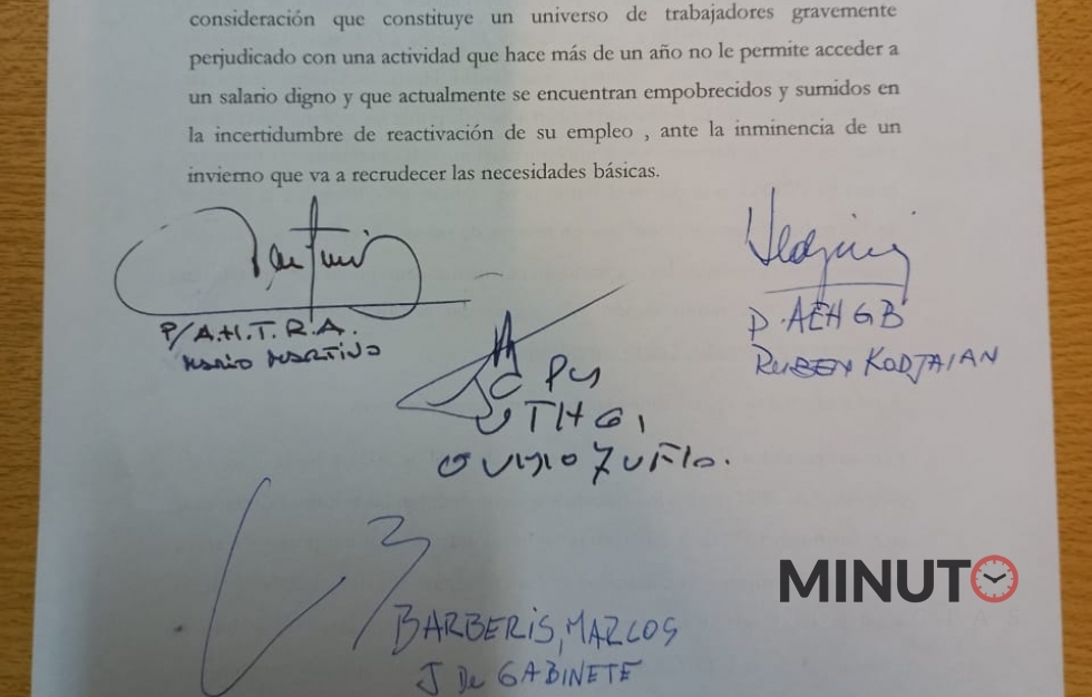 Agradecemos den tratamiento positivo y urgente a esta inquietud que es tan especifica de la actividad y la región y que requiere ser incluida en la contención del Estado precisamente por encontrarse la actividad paralizada, teniendo en consideración que constituye un universo de trabajadores gravemente perjudicado con una actividad que hace más de un año no le permite acceder a un salario digno y que actualmente se encuentran empobrecidos y sumidos en la incertidumbre de reactivación de su empleo, ante la inminencia de un invierno que va a recrudecer las necesidades básicasâ€.