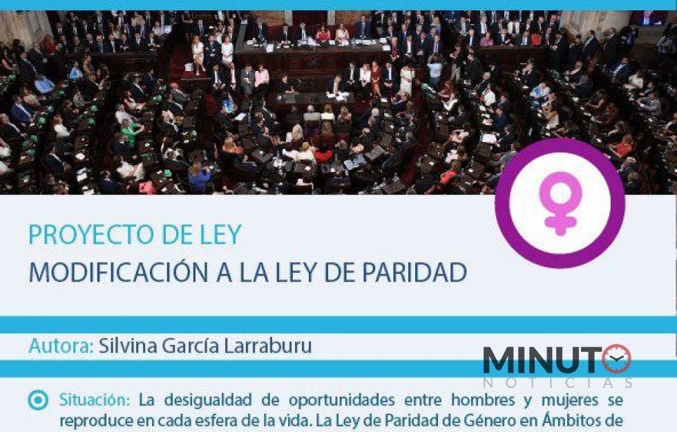 La Senadora Nacional Silvina GarcÃa Larraburu presentó una iniciativa que busca alcanzar una mayor equidad en la actual Ley de Paridad de Género. “Proponemos que los reemplazos en el Congreso de la Nación siempre sean realizados por mujeres, hasta conseguir que ambas Cámaras estén conformadas de manera igualitaria, en un 50% por mujeres y un 50% por varonesâ€.