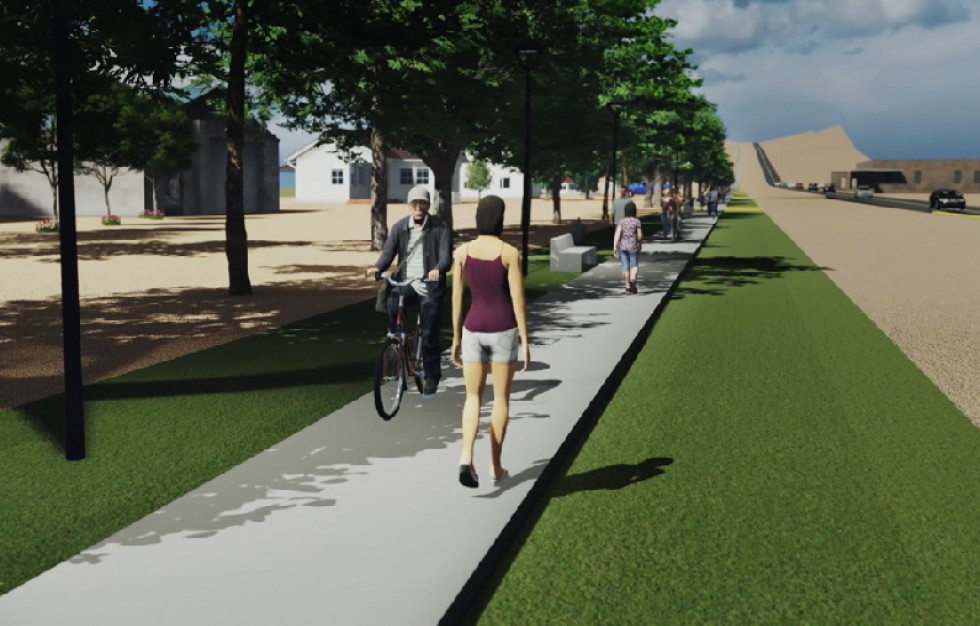La obra contará con: Forestación lateral sobre acceso Norte con riego; iluminación lateral LED con paneles solares; instalación eléctrica subterránea; señalización vertical y horizontal; instalación de mesas y bancos de material reciclado en espacios verdes sobre avenida Mosconi y calles Rosario y Lima; instalación de cestos de basura realizados con material reciclado, e instalación de juegos aeróbicos siguiendo el diseño de la bicisenda del acceso sur.