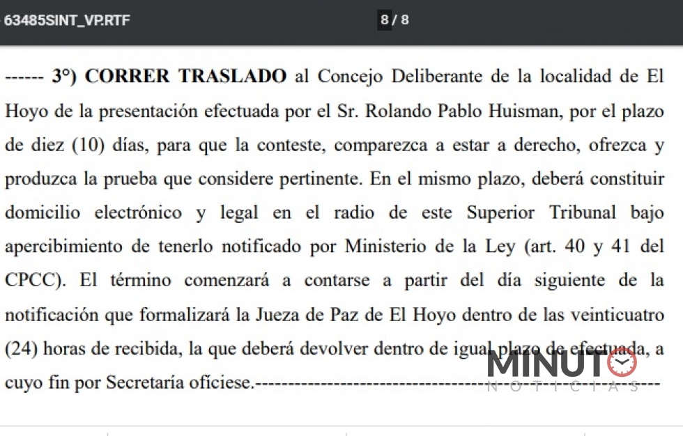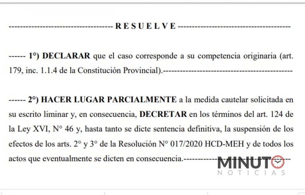 Luego del dictamen del procurador Miquelarena, que se conoció apenas 24 horas después de la presentación judicial realizada por el mismo Pol Huisman, intendente de esta localidad, llega hoy miércoles en tiempo récord una resolución del Superior Tribunal de Justicia de la provincia, la resolución en el mismo sentido.