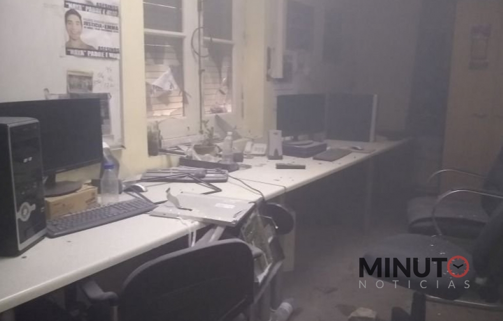 Sin presencia policial en las afueras de Casa de Gobierno, los manifestantes del "No a la Mina" generaron daños en distintas dependencias oficiales e incluso prendieron fuego las persianas de la oficina principal del gobernador del Chubut, Mariano Arcioni.