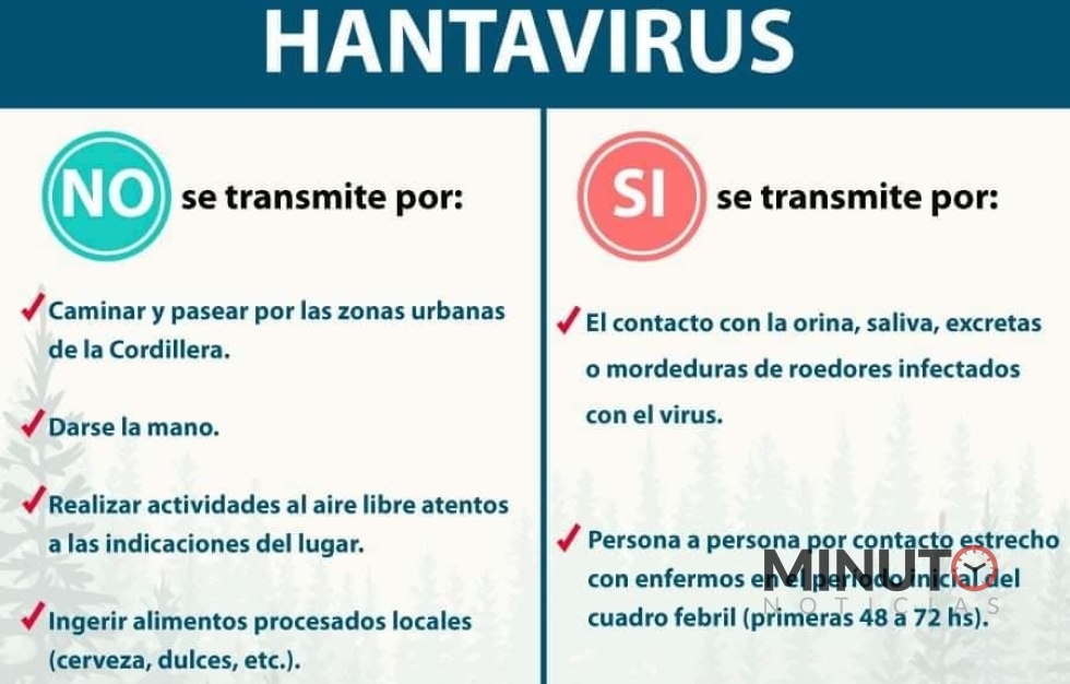 Por último, desde la Dirección Provincial de PatologÃas Prevalentes y EpidemiologÃa, dependiente de la cartera sanitaria chubutense, detallaron que los hantavirus se transmiten fundamentalmente por la inhalación de aerosoles cargados de virus provenientes de heces, orina, o saliva de roedores infectados.