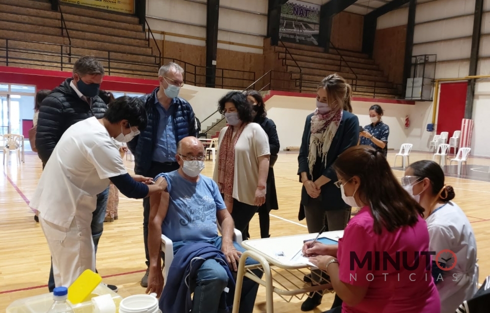 Las autoridades sanitarias de Chubut y Nación estuvieron luego en la sede del Club Independiente Deportivo, en el barrio 28 de Junio, complejo en el que desde principios de marzo se lleva a cabo la campaña.
