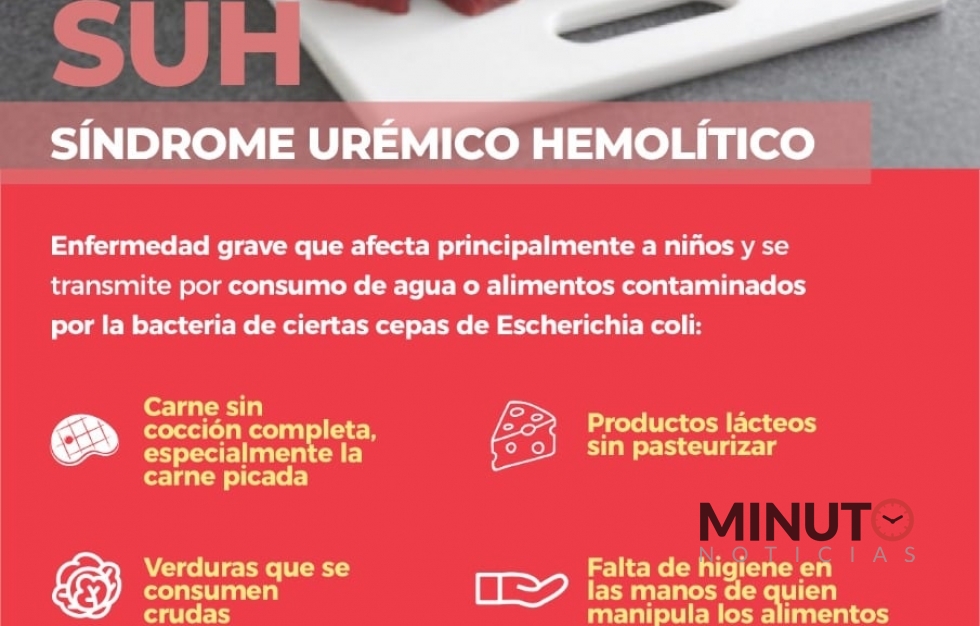 El SUH es producido por una bacteria que se puede adquirir por consumir carne poco cocida, frutas y verduras mal lavadas, leche y jugos sin pasteurizar, agua no potable, y cualquier alimento que sufrió contaminación cruzada con un alimento contaminado o que fue manipulado con las manos sucias.