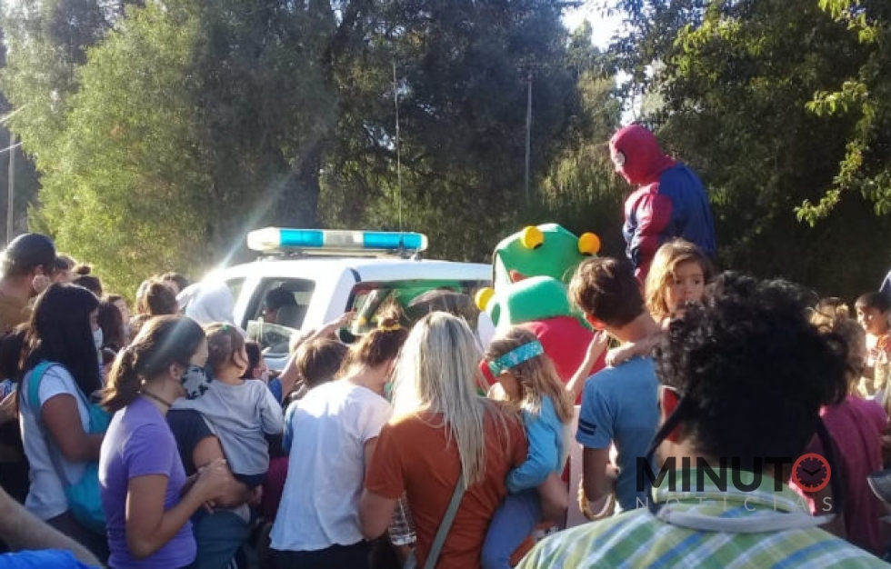 Un móvil policial y otro del cuartel de bomberos recorrieron los barrios BahÃa Serena, Nahuel Malal, Casa de Piedra, Pájaro Azul, Dos de Agoto, Jockey Club y algunas calles aledañas, y entregaron 400 huevos de chocolate y bolsitas con golosinas.