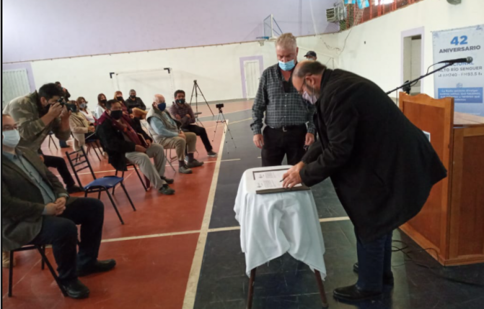 El acto fue presidido por el intendente Miguel López Gutiérrez y contó con la asistencia del ministro de Desarrollo Social, Mujer y Juventud, Gustavo Hermida, y el gerente general de Petrominera, José Luis Esperón, entre otros funcionarios del Gobierno del Chubut.