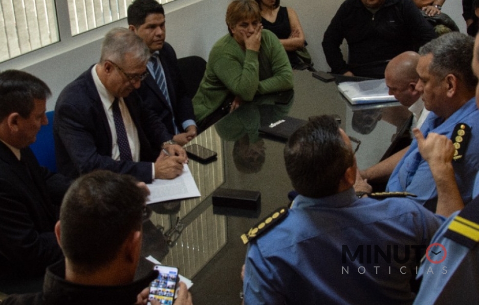 De la reunión, realizada en las instalaciones del Ministerio de EconomÃa, participaron los ministros de Gobierno y Justicia, Cristian Ayala, y de EconomÃa y Crédito Público, Oscar Antonena; el subsecretario de Seguridad, Rubén Becerra; el jefe de la PolicÃa, Cesar Brandt, y el subjefe, Juan Cruz Campos.
