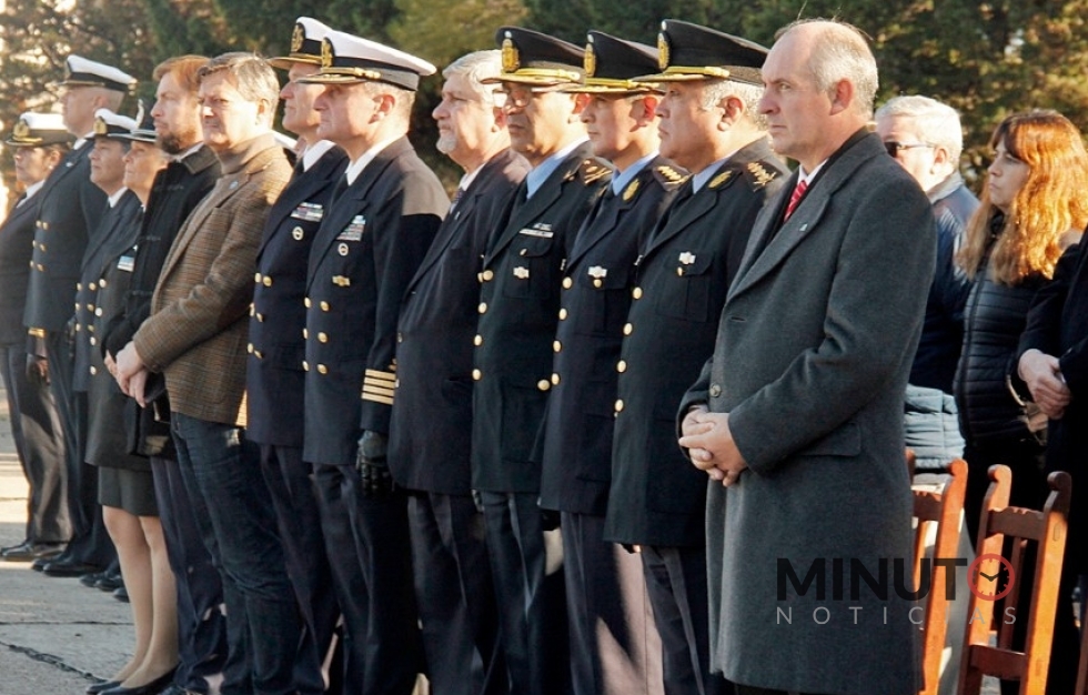 Participaron el jefe de la Base Aeronaval Almirante Zar de Trelew, Capitán de NavÃo Marcos Jonas; el jefe y subjefe de la PolicÃa del Chubut, VÃctor Acosta y Luis Cayupil, respectivamente; el jefe de la Unidad Regional de Trelew, Cristian Cedrón; personal de la Armada en actividad y en situación de retiro; la PolicÃa de Seguridad Aeroportuaria (PSA); Veteranos de la Guerra de Malvinas; la Banda de Música de la PolicÃa del Chubut y familiares e invitados especiales.