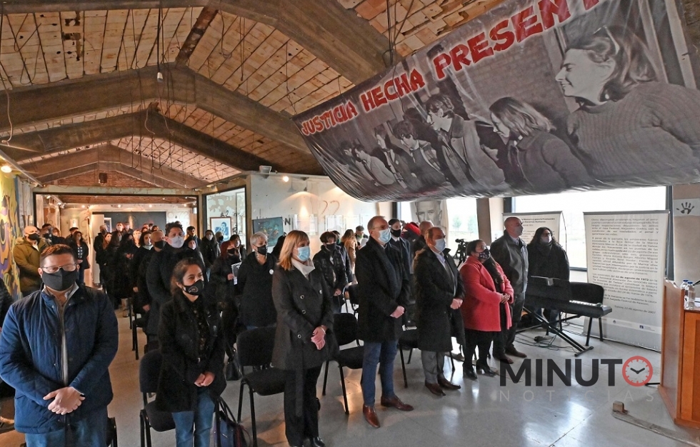El acto se llevó adelante en el Centro Cultural por la Memoria, ubicado en el predio del antiguo Aeropuerto de Trelew, y participaron los ministros de Gobierno y Justicia, José Grazzini y de Salud, Fabián Puratich; el secretario de Ciencia, TecnologÃa, Innovación Productiva y Cultura, Mauro Carrasco; las subsecretarias de Derechos Humanos, Carla Sánchez Galindo, de Información Pública, Vanesa Abril, y de Recursos, Apoyo y Servicios Auxiliares de Educación, Claudio Márquez; los diputados provinciales, Rafael Williams y Tatiana Goic; en representación de la Asociación de Familiares de las VÃctimas de La Masacre de Trelew, Silvia Pecci; la artista Plástica, Laura Buscarino, concejales y representantes del Archivo Provincial por la Memoria y del Centro Cultural por la Memoria de Trelew, y de organizaciones de Derechos Humanos.