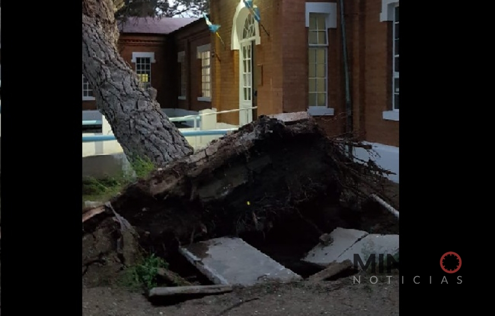 También, se registró la caÃda de árboles sobre la vivienda oficial de la Escuela Nº 79 de Colán Conhué, voladura del techo en la vivienda oficial del establecimiento Nº 117 de Lagunita Salada y la apertura de ventanas y voladura de techo paneles de cielorraso en la Escuela Nº 134 de Paso del Sapo.