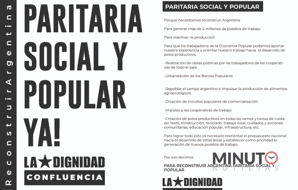 Una de las primeras actividades en conjunto aparte de las que se realizan cotidianamente, es “La Paritaria Social y Popular Ya!†donde se pide se le reconozcan a los movimientos sociales y se los tenga en cuenta para afrontar la dura crisis que han dejado los 4 años del macrismo mas este año de pandemia, que el esfuerzo debe ser en conjunto y que siempre el hilo se corta por lo más delgado, ósea el sector más débil. Por esto los movimiento deben estar a la altura de las circunstancia para ser ese motor de producción que necesita el paÃs.