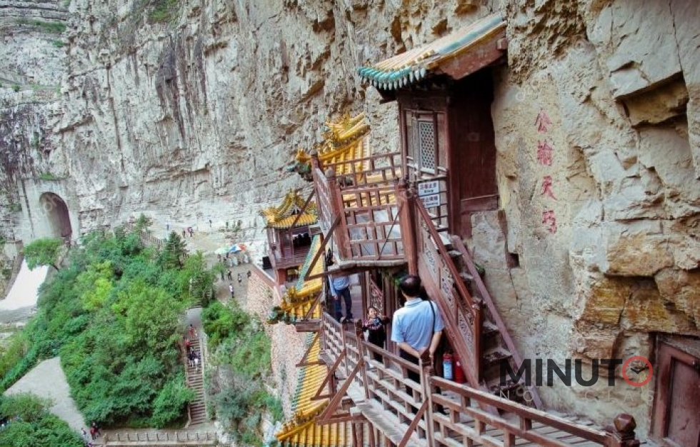 El Templo Colgante es un centro de turismo para la ciudad de Datong, que combina maravillas arquitectónicas e históricas. El templo consta de 40 salones y dos pabellones principales, ambos de tres pisos conectados por pasillos. El puente entre los pabellones tiene unos 10 metros de largo. Alcanzar el templo en sà requiere que los turistas suban por una escalera de piedra que ha sido tallada en la pared de roca. Dentro se encuentran estatuas delicadamente creadas y reliquias hechas de una variedad de materiales.