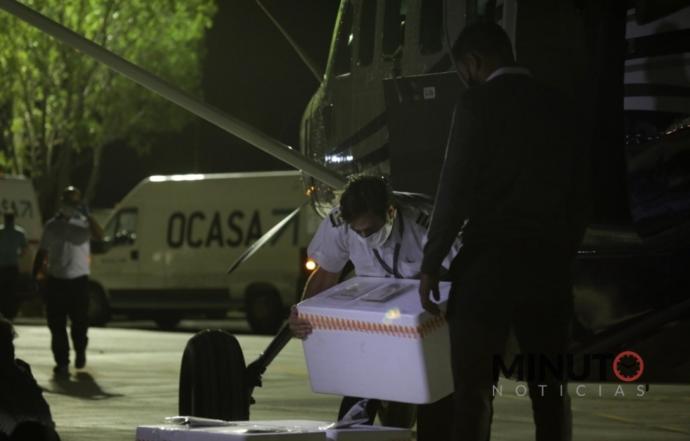 El ministro de Salud, Fabián Puratich, recibió este lunes por la noche en el aeropuerto de Trelew el avión que transportó las primeras 1500 dosis de la vacuna Sputnik V, y que serán distribuidas por cuatro camiones a cada una de las Ãreas Programáticas. Hoy comenzará la campaña de vacunación, con los trabajadores de la Salud y, a medida que lleguen más dosis, avanzará con los grupos prioritarios de riesgo.