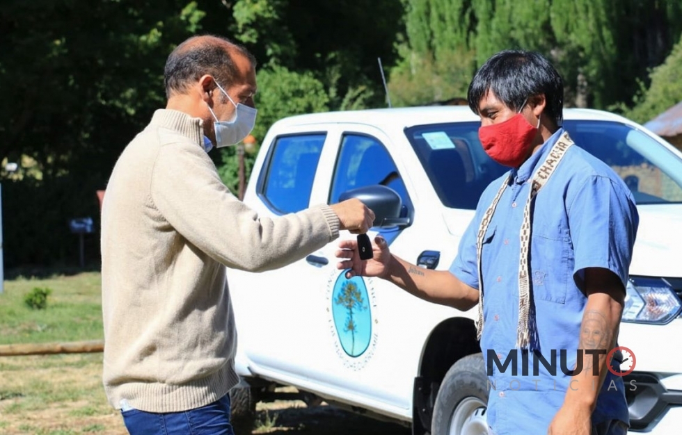 Esta miércoles, en Aluminé, el gobernador de Neuquén, Omar Gutiérrez, acompañado por el intendente Gabriel Ãlamo, participó de la entrega de tres camionetas a las comunidades Catalán de Lonco Luan; Currumil de Quillén y Poi Pucón-Las Orquetas que estuvieron representadas por sus respectivos loncos, Vidal Catalán, Manuel Morales y Bacilio Rosales.