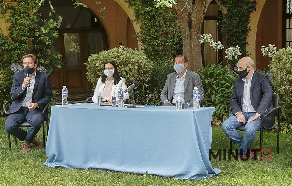 El mandatario estuvo acompañado por los ministros de Jefe de Gabinete, Sebastián González; de Producción e Industria, Facundo López Raggi; de Salud, Andrea Peve; y de Turismo, Marisa Focarazzo.
