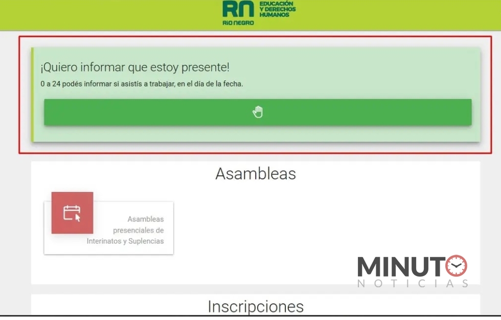 El o la docente deberá ingresar de manera voluntaria a “Trámites y Consultas†con su usuario y clave para poder dar el presente. Esta funcionalidad estará visible para el usuario luego de colocar sus datos personales y acceder a la sección respectiva, sobre la parte superior de la pantalla.