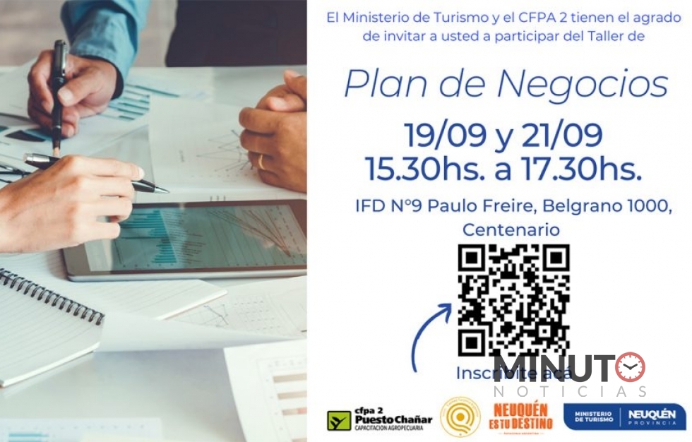 El ministerio de Turismo, la municipalidad de Centenario y el Centro de Formación Profesional Agropecuaria Nº 2 (CFPA 2) invitan a participar de la capacitación en Plan de Negocios destinada a todas aquellas personas que tengan su emprendimiento ya en funcionamiento o estén por comenzar sus proyectos vinculados a la actividad turÃstica.