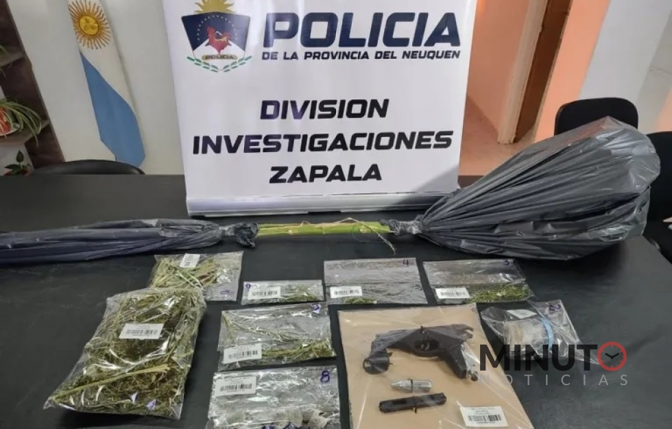 Con las órdenes judiciales correspondientes, el personal concretó los operativos de manera simultánea. En la diligencia llevada a cabo sobre la calle Loncopué, los resultados fueron positivos: se secuestró marihuana en distintas presentaciones: semillas, envoltorios fraccionados y una planta de gran tamaño, con un peso total de 167 gramos. Además, se incautó una réplica de arma de fuego.