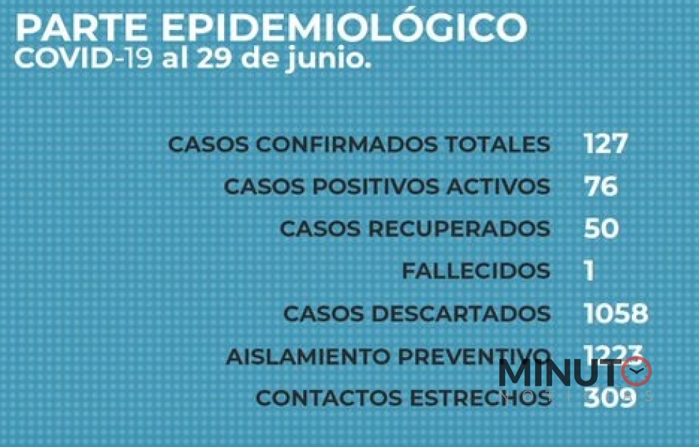 hs. del 29/06), ascendiendo a ciento veinte y siete (127) los casos positivos, de los cuales se