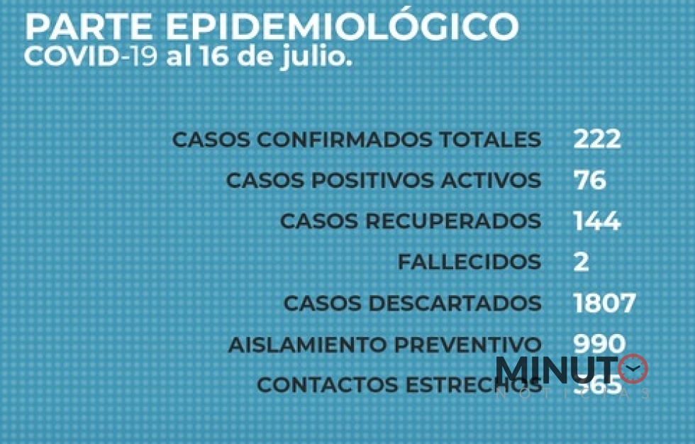 del 16/07), ascendiendo a doscientos veinte y dos (222) los casos positivos, de los cuales se