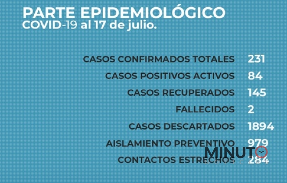 20hs. del 15/07), ascendiendo a doscientos treinta y uno (231) los casos positivos, de los cuales